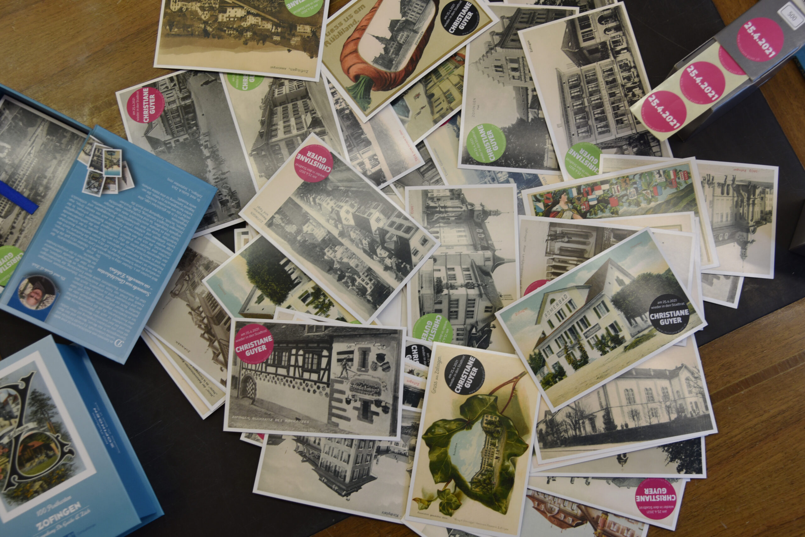Die Wahlkampagne basiert auf wiederverwertetem Wahlkampagnenmaterial früherer Jahre und Restbestände von historischen Postkarten von Zofingen. Punktuell aufgefrischt und neu interpretiert erhalten sie ein neues Leben ganz nach den grünen Idealen der Nachhaltigkeit. Auf den Druck neuer Werbematerialen wird bewusst verzichtet. Mit einer schonenden Nutzung der Ressourcen unter dem Motto «von der Vergangenheit lernen, in der Gegenwart leben, für die Zukunft einstehen» lebt sie ihre politische Überzeugung vor. Auch die Frage, wie können in der aktuell für viele Leute schwierigen Zeit, die zur Verfügung stehenden Mittel sinnvoll einsetzt werden? Das durch den Verzicht auf Druckmaterialien und Giveaways eingespart Geld, wird stattdessen in Gutscheine des Zofinger Gewerbevereins investiert. So kann das lokale Gewerbe davon profitieren und die Bevölkerung hat die Möglichkeit diese an den Standaktionen zu gewinnen.